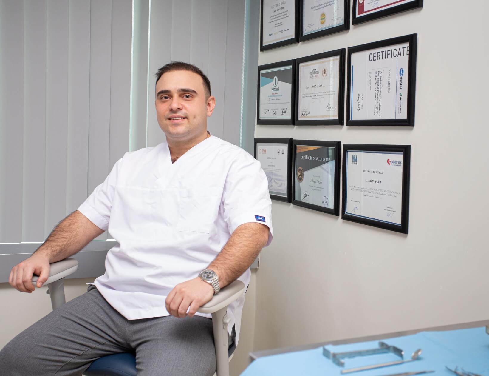 Kendi kliniğinde hizmet veren Ağız ve Çene Cerrahisi Uzmanı Dr. Ahmet Erdem, hasta memnuniyetini ön planda tutarak modern diş hekimliği uygulamalarını en üst standartlarda sunmaya devam etmektedir