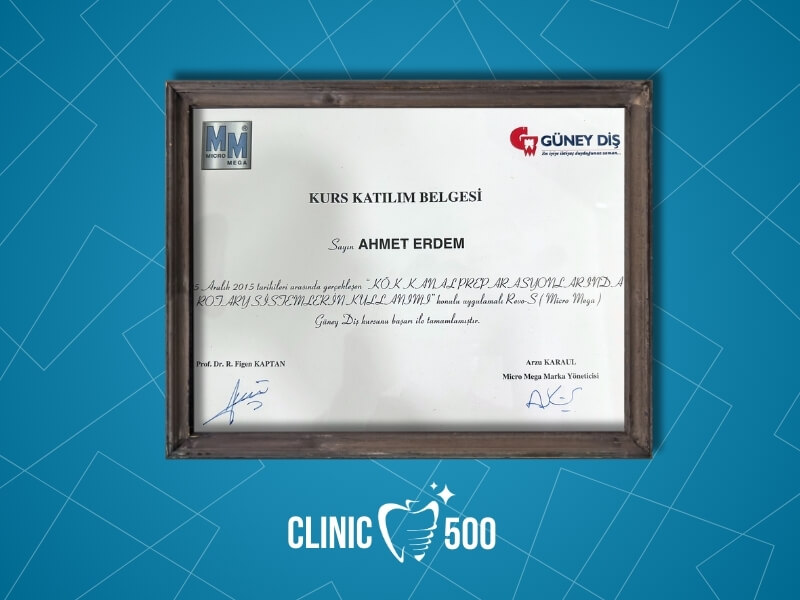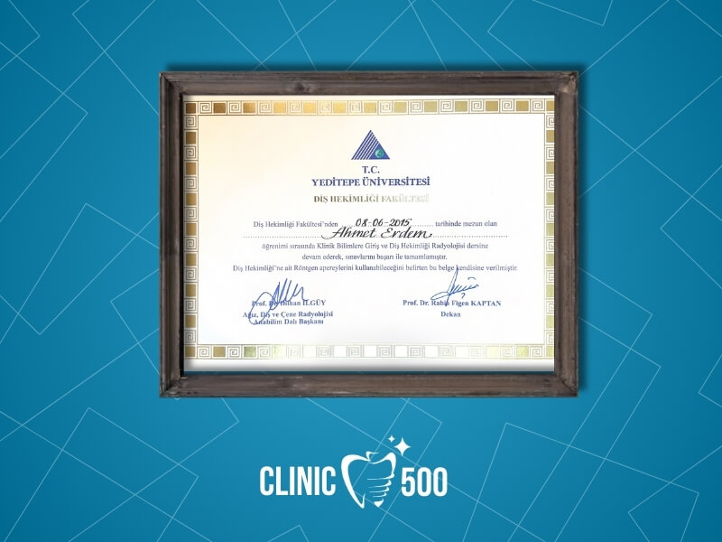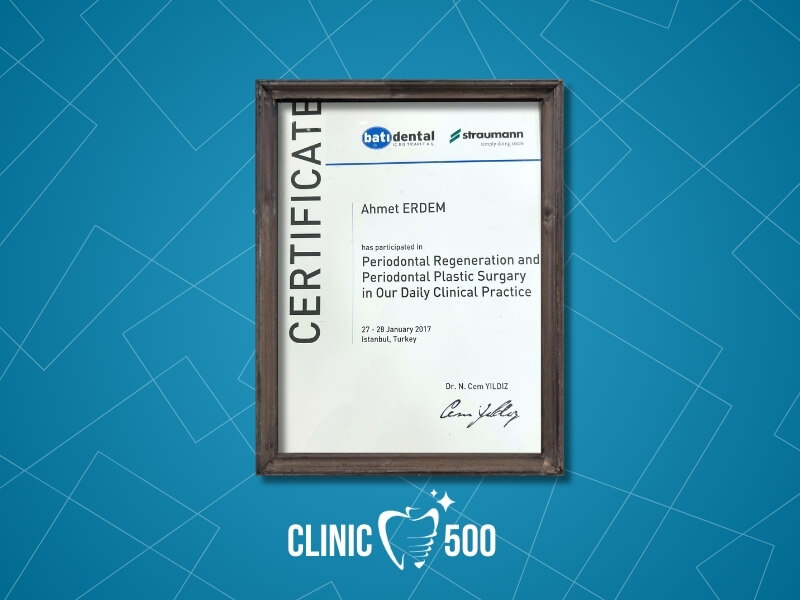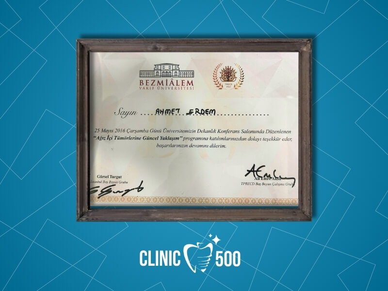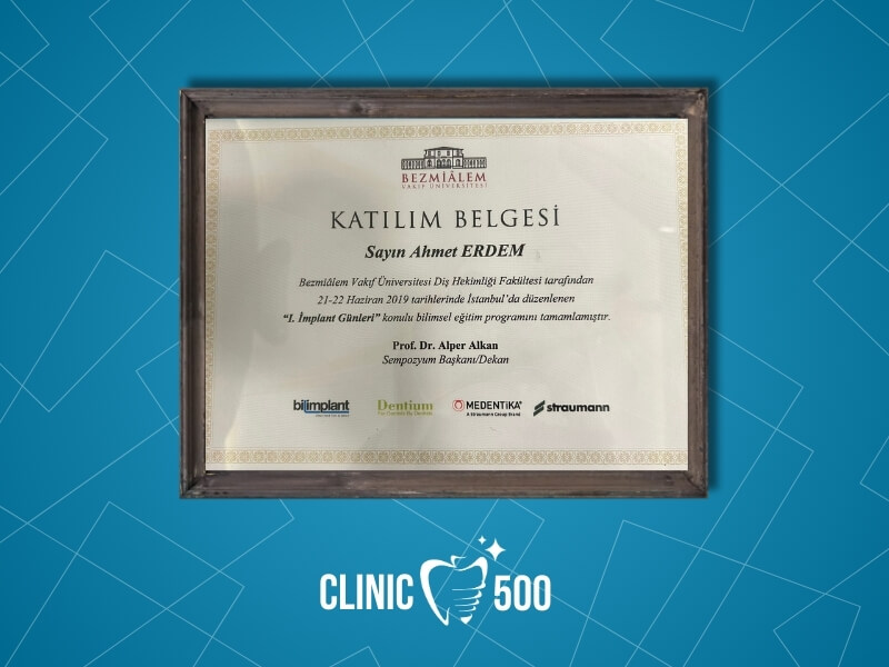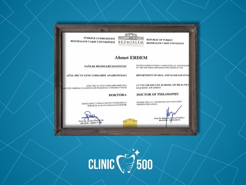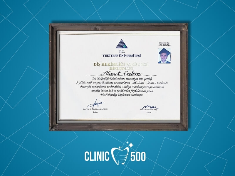 Uzmanlık eğitimini Bezmialem Vakıf Üniversitesi Diş Hekimliği Fakültesi Ağız, Diş ve Çene Cerrahisi bölümünde tamamlayan Ağız ve Çene Cerrahisi Uzmanı Dr. Ahmet Erdem, özellikle dental implant tedavisi, ileri düzey implant cerrahisi, kemik ve yumuşak doku cerrahileri ile estetik diş hekimliği konularında derinlemesine bilgi ve deneyim kazanmıştır.